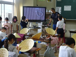 今日中学年は、運動会で使う花笠を作りました。中に鈴をつけ、花を飾って完成です。