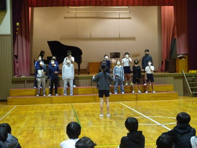 高峰小学校の体育館で、交流会の開式と互いの合唱を聞き合いました。この経験をもとに、卒業式ではさらに思いを込めた素敵な合唱が披露されると思います。