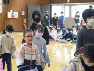 1年生が6年生をエスコートし体育館へ入場しました。児童会の司会でスタートです。